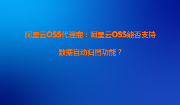 2025-09-16阿里云OSS代理商:阿里云OSS能否支持?jǐn)?shù)據(jù)自動(dòng)歸檔功能? 引言:數(shù)據(jù)存儲與歸檔的現(xiàn)代需求 隨著數(shù)字化轉(zhuǎn)型的加速,企業(yè)對數(shù)據(jù)存儲和管理的需求日益增長。阿里云對象存儲服務(wù)(OSS)作為業(yè)界領(lǐng)先的云存...