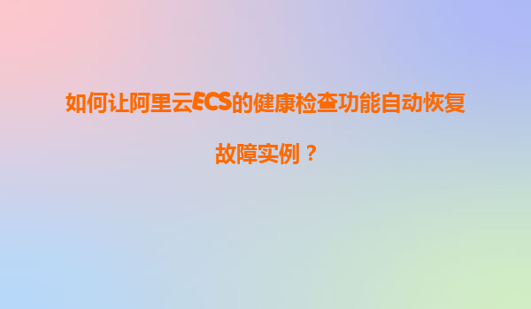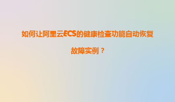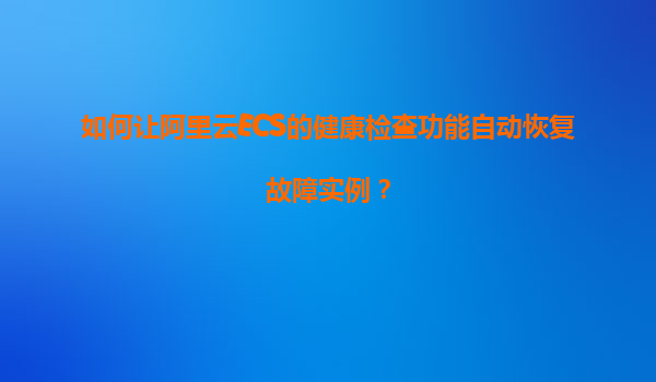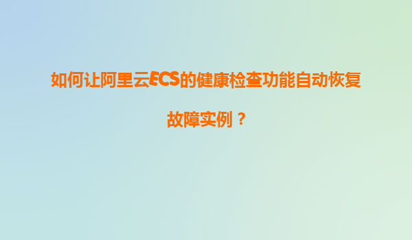 2025-11-12如何讓阿里云ECS的健康檢查功能自動恢復(fù)故障實例? ECS健康檢查的核心作用與價值 阿里云ECS的健康檢查功能是保障業(yè)務(wù)連續(xù)性的關(guān)鍵機制,通過周期性探測實例的運行狀態(tài)(如網(wǎng)絡(luò)可達(dá)性、服務(wù)端...