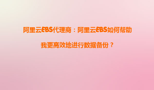 阿里云EBS代理商:阿里云EBS如何幫助我更高效地進行數(shù)據(jù)備份? 一、引言:數(shù)據(jù)備份的重要性與挑戰(zhàn) 在數(shù)字化轉型的浪潮中,數(shù)據(jù)已成為企業(yè)的核心資產。無論是關鍵業(yè)務數(shù)據(jù)、客戶信息還是應用程序配置,一旦...