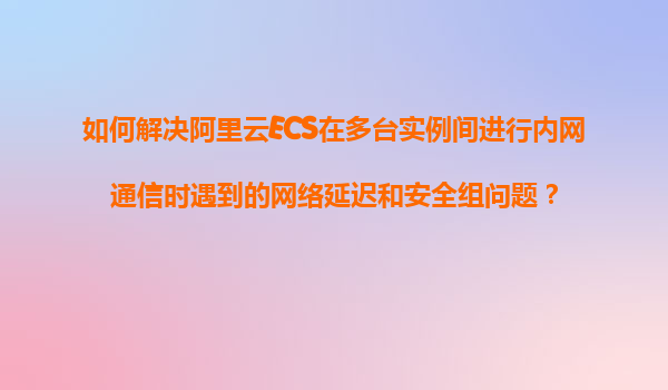 2025-11-07如何解決阿里云ECS在多臺實例間進(jìn)行內(nèi)網(wǎng)通信時遇到的網(wǎng)絡(luò)延遲和安全組問題? 一、問題背景:阿里云ECS內(nèi)網(wǎng)通信的挑戰(zhàn) 隨著企業(yè)業(yè)務(wù)規(guī)模的擴(kuò)大,阿里云ECS(彈性計算服務(wù))的多實例協(xié)同工作成為常態(tài)。...
