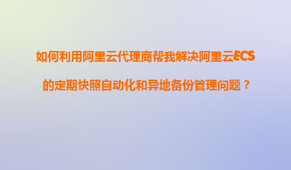 4008-020-360 如何利用阿里云代理商解決ECS定期快照與異地備份管理問題 一、ECS定期快照自動化的重要性 阿里云ECS實例承載著企業(yè)核心業(yè)務(wù)數(shù)據(jù),定期快照是保障數(shù)據(jù)安全的基礎(chǔ)措施。通過自動化快照策略...