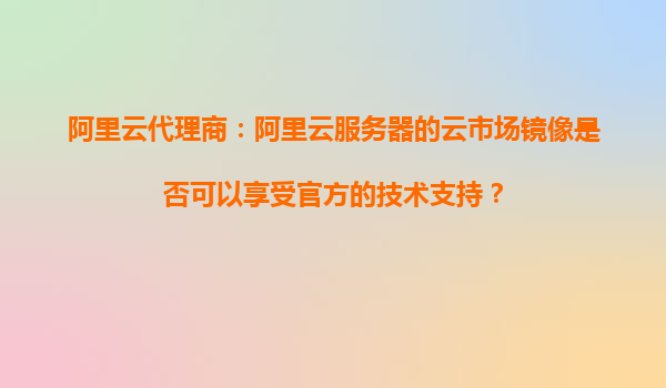 2025-11-04阿里云代理商:阿里云服務(wù)器的云市場(chǎng)鏡像是否可以享受官方的技術(shù)支持? 一、阿里云代理商與云市場(chǎng)鏡像的角色定位 阿里云作為國(guó)內(nèi)領(lǐng)先的云計(jì)算服務(wù)提供商,其生態(tài)體系中包含眾多代理商合作伙伴。代...