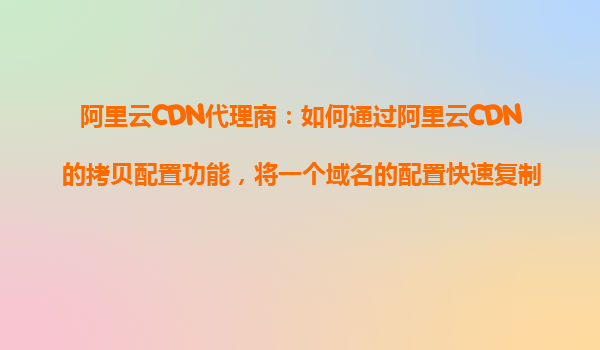 2025-10-26阿里云CDN代理商:如何通過阿里云CDN的拷貝配置功能,將一個(gè)域名的配置快速?gòu)?fù)制到另一個(gè)? 引言:為什么需要CDN配置拷貝功能? 在復(fù)雜的網(wǎng)絡(luò)環(huán)境中,企業(yè)或開發(fā)者往往需要管理多個(gè)域名,而這些域名的C...