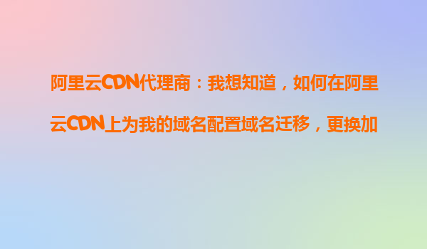 2025-10-26阿里云CDN代理商:如何在阿里云CDN上為域名配置遷移與更換加速域名 前言:域名遷移與加速域名更換的背景需求 在數(shù)字化業(yè)務(wù)快速發(fā)展的今天,企業(yè)可能因業(yè)務(wù)調(diào)整、品牌升級(jí)或性能優(yōu)化需要更換加速域名或遷移原...
