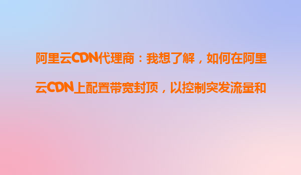 2025-10-24阿里云CDN代理商指南:如何配置帶寬封頂以控制突發(fā)流量與成本 前言:帶寬封頂的必要性 在數字化業(yè)務高速發(fā)展的今天,突發(fā)流量已成為許多企業(yè)面臨的常態(tài)。無論是促銷活動、熱點事件還是惡意攻擊,...