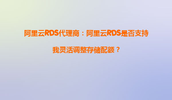 2025-10-07阿里云RDS代理商:阿里云RDS是否支持我靈活調(diào)整存儲配額? 一、阿里云RDS存儲配額的靈活性解析 阿里云RDS(RelationalDatabaseService)作為一款云數(shù)據(jù)庫服務(wù),其核心優(yōu)勢之一便是資源的彈性擴展能...