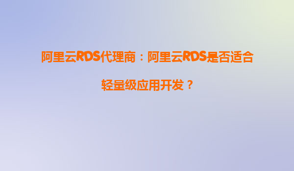 2025-10-07阿里云RDS代理商:阿里云RDS是否適合輕量級應(yīng)用開發(fā)? 引言:輕量級應(yīng)用開發(fā)的數(shù)據(jù)庫需求 在當(dāng)今快速發(fā)展的互聯(lián)網(wǎng)時代,輕量級應(yīng)用開發(fā)已成為許多初創(chuàng)企業(yè)和小型項目的首選。這類應(yīng)用通常具有用戶量較...