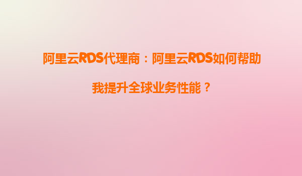 2025-10-07阿里云RDS代理商:阿里云RDS如何幫助我提升全球業(yè)務(wù)性能? 引言:全球化業(yè)務(wù)的數(shù)據(jù)挑戰(zhàn) 在全球化競(jìng)爭(zhēng)日益激烈的今天,企業(yè)需要高效、穩(wěn)定且安全的數(shù)據(jù)庫(kù)服務(wù)來(lái)支撐其業(yè)務(wù)擴(kuò)展。阿里云RDS(Relational...