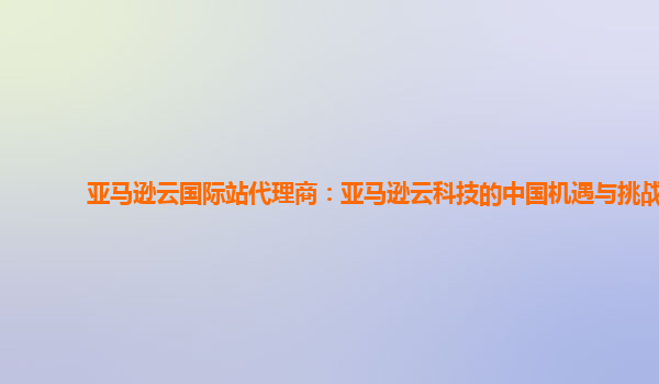 2024-01-11亞馬遜云國際站代理商:亞馬遜云科技的中國機遇與挑戰(zhàn) 亞馬遜云科技,即AWS(AmazonWebServices),作為全球領先的云計算服務提供商,正以其強大的技術實力和豐富的產(chǎn)品線在中國市場迅速崛起。同時,AWS的亞馬...