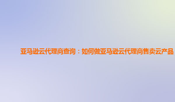 如何做亞馬遜云代理商售賣云產(chǎn)品?