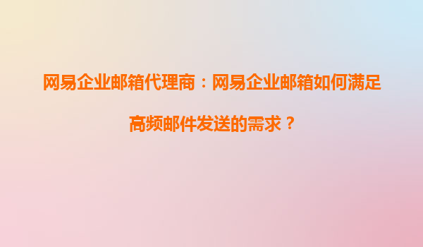 網(wǎng)易企業(yè)郵箱如何滿足高頻郵件發(fā)送的需求?