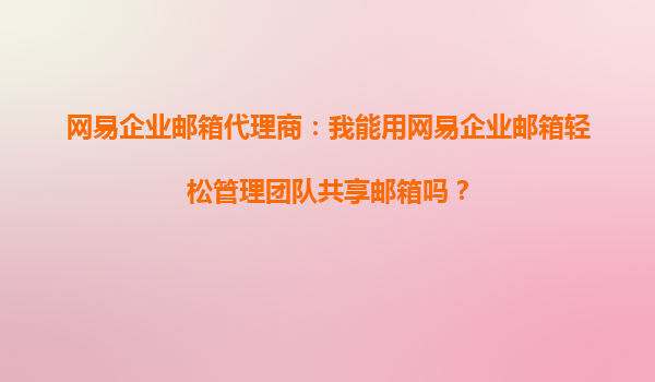 網(wǎng)易企業(yè)郵箱:團(tuán)隊共享郵箱的高效管理解決方案