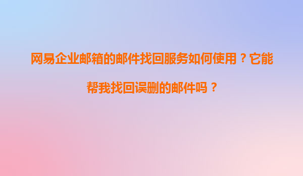 網(wǎng)易企業(yè)郵箱郵件找回服務詳解及誤刪郵件恢復指南