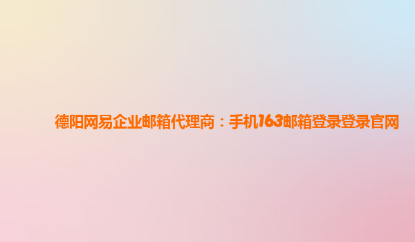 德陽網(wǎng)易企業(yè)郵箱代理商:手機(jī)163郵箱登錄登錄官網(wǎng)