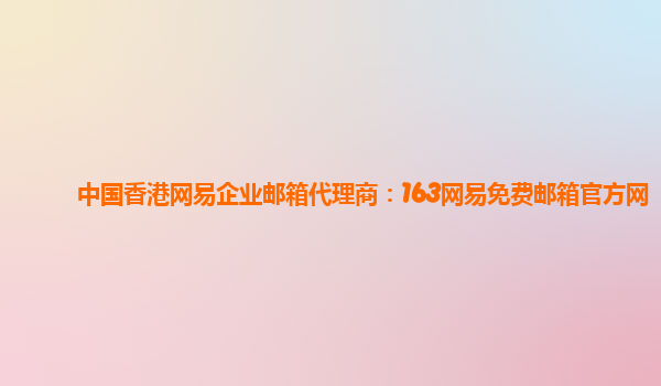 中國香港網易企業郵箱代理商:163網易免費郵箱官方網