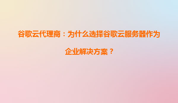 谷歌云代理商:為什么選擇谷歌云服務(wù)器作為企業(yè)解決方案?