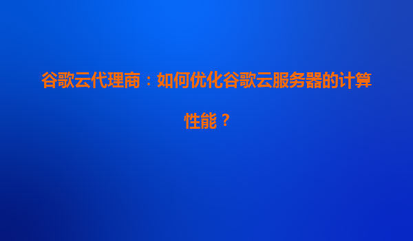 谷歌云代理商:如何優(yōu)化谷歌云服務(wù)器的計算性能?