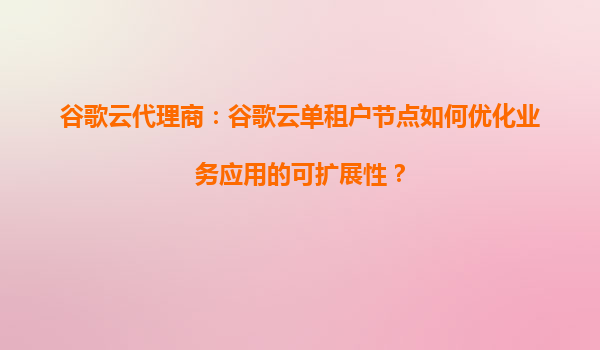 谷歌云代理商:谷歌云單租戶節點如何優化業務應用的可擴展性?