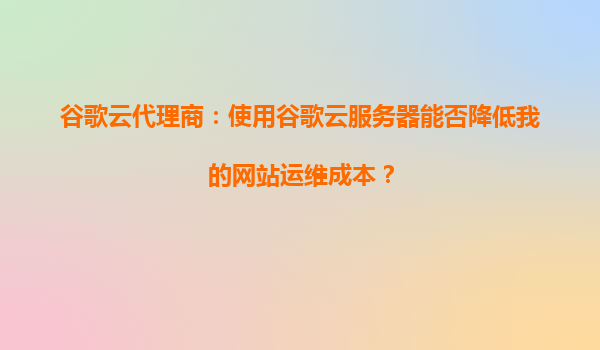 谷歌云代理商:使用谷歌云服務(wù)器能否降低我的網(wǎng)站運維成本?