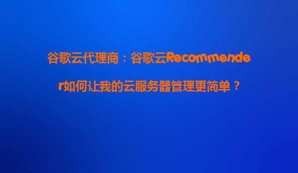 谷歌云代理商:谷歌云Recommender如何讓我的云服務器管理更簡單?