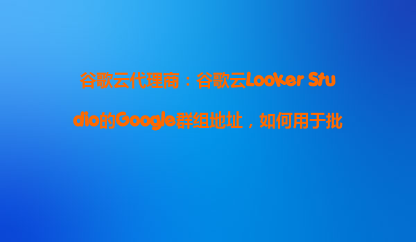 2025-10-31谷歌云代理商:LookerStudio群組地址在批量共享報告中的應(yīng)用與谷歌云優(yōu)勢解析 一、LookerStudio與Google群組的批量共享解決方案 GoogleLookerStudio(原DataStudio)作為谷歌云生態(tài)中的可視化分...