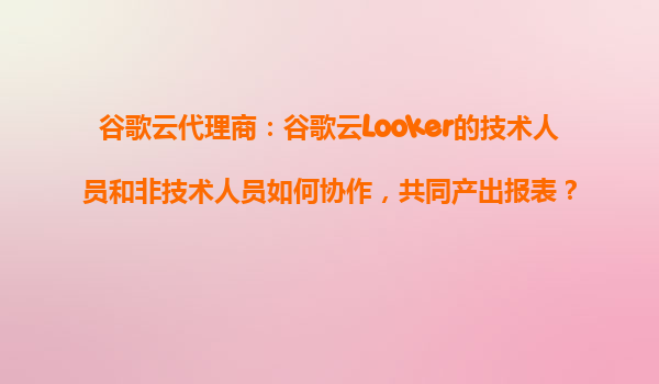 2025-10-29谷歌云代理商:谷歌云Looker的技術(shù)人員和非技術(shù)人員如何協(xié)作,共同產(chǎn)出報表? 引言:協(xié)作的價值 在數(shù)據(jù)驅(qū)動的時代,如何高效地從海量數(shù)據(jù)中提取有價值的信息并轉(zhuǎn)化為行動,是企業(yè)面臨的核心挑...
