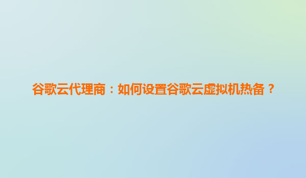 2025-08-07谷歌云代理商:如何設置谷歌云虛擬機熱備? 一、什么是谷歌云虛擬機熱備? 谷歌云虛擬機熱備(HotStandby)是一種高可用性解決方案,通過實時同步主虛擬機的數據和配置到備用虛擬機,確保在主虛擬機發生故...