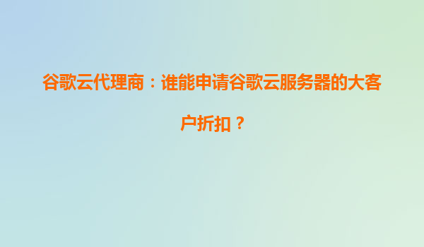 2025-07-21谷歌云代理商:誰能申請谷歌云服務器的大客戶折扣? 一、什么是谷歌云大客戶折扣? 谷歌云(GoogleCloud)作為全球領先的云計算服務提供商,為大客戶提供專屬...
