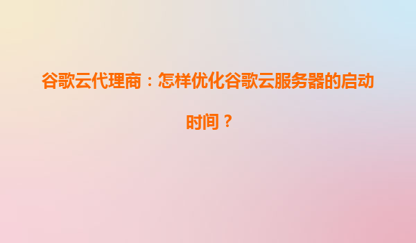2025-07-03谷歌云代理商:怎樣優(yōu)化谷歌云服務(wù)器的啟動時間? 引言 在當(dāng)今快速發(fā)展的云計(jì)算領(lǐng)域,服務(wù)器的啟動時間直接影響著業(yè)務(wù)的響應(yīng)速度和用戶體驗(yàn)。谷歌云(GoogleCloudPlatform,GCP)憑借...