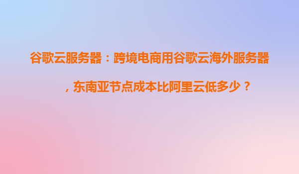 2025-04-05谷歌云服務(wù)器:跨境電商首選,東南亞節(jié)點(diǎn)成本與阿里云對比分析 一、東南亞節(jié)點(diǎn)成本對比:谷歌云為何更優(yōu)? 在跨境電商領(lǐng)域,東南亞市場因其高速增長和龐大人口基數(shù)備受關(guān)注。選擇云服務(wù)器時,...