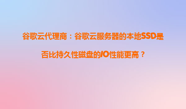 2025-10-19谷歌云代理商:谷歌云服務(wù)器的本地SSD是否比持久性磁盤的IO性能更高? 引言 在云計算領(lǐng)域,存儲性能是影響應(yīng)用程序運(yùn)行效率的關(guān)鍵因素之一。谷歌云平臺(GoogleCloudPlatform,GCP)提供了多種存儲選項...