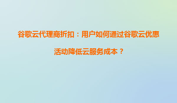 谷歌云代理商折扣:用戶如何通過谷歌云優惠活動降低云服務成本?
