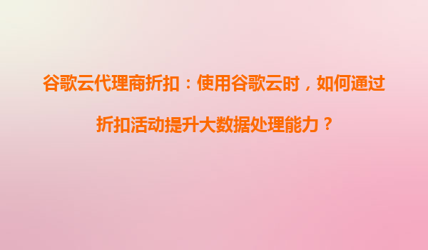 谷歌云代理商折扣:使用谷歌云時,如何通過折扣活動提升大數(shù)據(jù)處理能力?