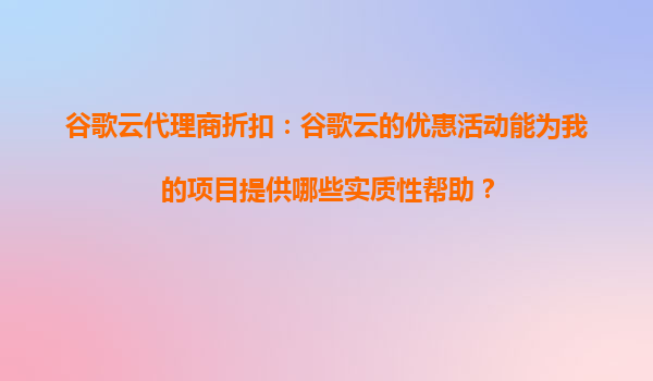 谷歌云代理商折扣:谷歌云的優(yōu)惠活動能為我的項目提供哪些實質(zhì)性幫助?