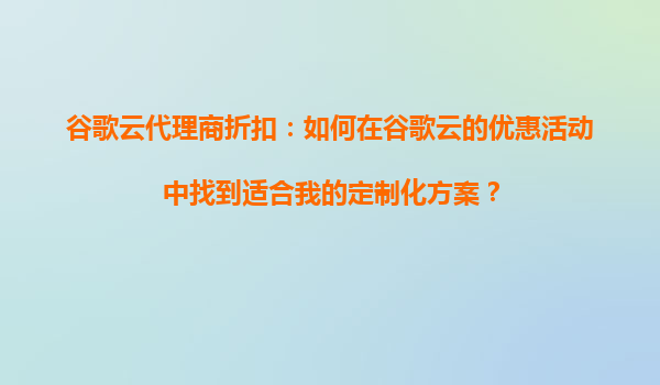 谷歌云代理商折扣:如何在谷歌云的優(yōu)惠活動中找到適合我的定制化方案?