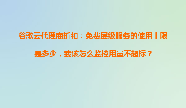 谷歌云代理商折扣:免費層級服務的使用上限與用量監(jiān)控指南
