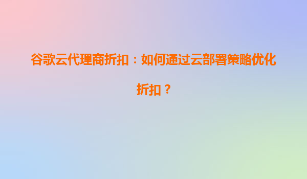 谷歌云代理商折扣與云部署策略優(yōu)化指南