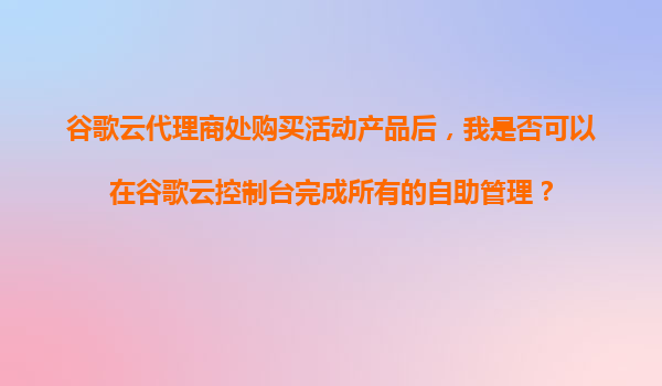 2025-11-05谷歌云代理商處購買活動(dòng)產(chǎn)品后,是否可以在谷歌云控制臺(tái)完成所有自助管理? 一、谷歌云與代理商協(xié)同服務(wù)的優(yōu)勢 谷歌云(GoogleCloud)作為全球領(lǐng)先的云計(jì)算平臺(tái),提供豐富的IaaS、PaaS...