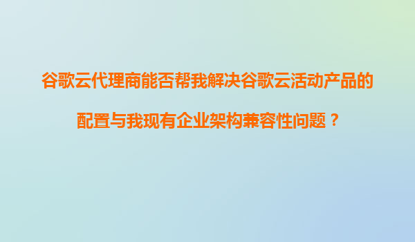 2025-11-05谷歌云代理商能否幫我解決谷歌云活動(dòng)產(chǎn)品的配置與我現(xiàn)有企業(yè)架構(gòu)兼容性問題? 引言:企業(yè)上云的兼容性挑戰(zhàn) 在數(shù)字化轉(zhuǎn)型浪潮中,企業(yè)將業(yè)務(wù)遷移至云端已成為必然趨勢。然而,如何在部署谷歌云活...