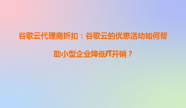 2025-09-16谷歌云代理商折扣:谷歌云提供的優(yōu)惠活動(dòng)是否適合初創(chuàng)公司使用? 對(duì)于許多初創(chuàng)公司來說,云計(jì)算已成為不可或缺的基礎(chǔ)設(shè)施。在眾多云服務(wù)提供商中,谷歌云(GoogleCloud)以其強(qiáng)大的技術(shù)實(shí)力、穩(wěn)定的服務(wù)和靈...
