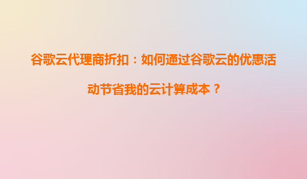 2025-09-16谷歌云代理商折扣:如何通過谷歌云的優(yōu)惠活動(dòng)節(jié)省我的云計(jì)算成本? 一、為什么選擇谷歌云? 谷歌云(GoogleCloud)是全球領(lǐng)先的云計(jì)算服務(wù)提供商之一,提供計(jì)算、存儲(chǔ)、數(shù)據(jù)庫(kù)、人工智...