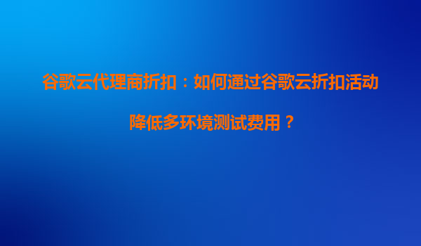 2025-09-16谷歌云代理商折扣:如何通過谷歌云折扣活動降低多環(huán)境測試費(fèi)用? 一、引言 在云計(jì)算時(shí)代,多環(huán)境測試(如開發(fā)、測試、預(yù)發(fā)布、生產(chǎn)等)已成為企業(yè)軟件開發(fā)的標(biāo)配。然而,多環(huán)境部...
