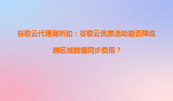 2025-09-16谷歌云代理商折扣:谷歌云優(yōu)惠活動能否降低跨區(qū)域數(shù)據(jù)同步費(fèi)用? 引言 隨著企業(yè)數(shù)字化轉(zhuǎn)型的加速,越來越多的公司開始將業(yè)務(wù)遷移到云端。谷歌云(GoogleCloudPlatform,GCP)作為全球領(lǐng)先的云計(jì)算服務(wù)提供商...