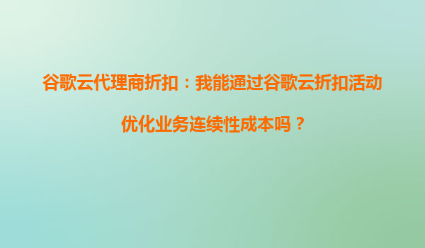 2025-09-16谷歌云代理商折扣:通過谷歌云折扣活動優(yōu)化業(yè)務(wù)連續(xù)性成本 在數(shù)字化時(shí)代,云計(jì)算已成為企業(yè)實(shí)現(xiàn)業(yè)務(wù)連續(xù)性和降低成本的核心工具之一。作為全球領(lǐng)先的云服務(wù)提供商,谷歌云(GoogleCloud)以其高性能、高安全性和...