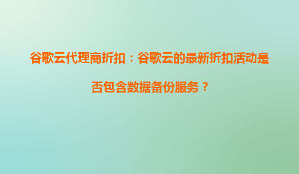 2025-09-16谷歌云代理商折扣:數(shù)據(jù)備份服務(wù)是否包含在內(nèi)? 隨著企業(yè)數(shù)字化轉(zhuǎn)型的加速,云計(jì)算服務(wù)的需求日益增長(zhǎng)。谷歌云因其卓越的性能、安全性和靈活性,成為眾多企業(yè)的首選。近期,許多用戶(hù)關(guān)注...