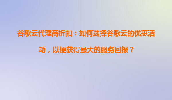 2025-09-16谷歌云代理商折扣:如何選擇谷歌云的優(yōu)惠活動(dòng),以便獲得最大的服務(wù)回報(bào)? 1.谷歌云的核心優(yōu)勢(shì)概覽 在選擇谷歌云(GoogleCloud)的優(yōu)惠活動(dòng)前,了解其核心優(yōu)勢(shì)是至關(guān)重要的。谷歌云作為全球領(lǐng)先的云計(jì)算...