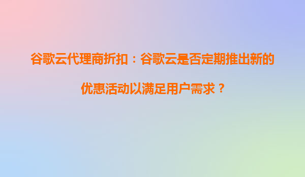 4008-020-360 谷歌云代理商折扣:谷歌云是否定期推出新的優(yōu)惠活動(dòng)以滿(mǎn)足用戶(hù)需求? 在當(dāng)今數(shù)字化快速發(fā)展的時(shí)代,云計(jì)算已成為企業(yè)提升效率、降低成本的重要工具。作為全球領(lǐng)先的云服務(wù)提供商之一,谷歌云(GoogleCloud)...