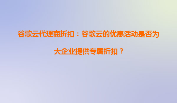 2025-09-16谷歌云代理商折扣:谷歌云的優(yōu)惠活動(dòng)是否為大企業(yè)提供專屬折扣? 谷歌云的優(yōu)勢(shì) 谷歌云(GoogleCloudPlatform,GCP)作為全球領(lǐng)先的云計(jì)算服務(wù)提供商,憑借其強(qiáng)大的基礎(chǔ)設(shè)施、先進(jìn)...