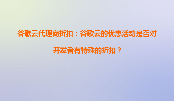 2025-09-06谷歌云代理商折扣:谷歌云的優(yōu)惠活動是否對開發(fā)者有特殊的折扣? 谷歌云的優(yōu)勢解析 在探討谷歌云是否為開發(fā)者提供特殊折扣之前,首先需要了解谷歌云的核心優(yōu)勢。谷歌云(GoogleCloudPl...
