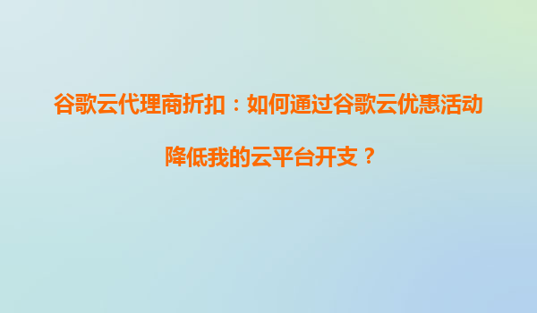 2025-09-06谷歌云代理商折扣:如何通過折扣活動優(yōu)化云基礎設施 引言 隨著企業(yè)數(shù)字化轉(zhuǎn)型的加速,云計算已成為現(xiàn)代化基礎設施的核心。選擇合適的云服務商并優(yōu)化資源使用對企業(yè)至關...